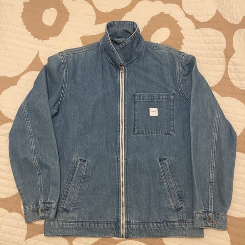 Makia takki sinisenä, koko M. Valmistettu polyesteristä. Takki soveltuu ulkokäyttöön.