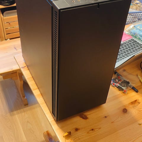 Muuten ehjä kotelo mutta etupaneelista puuttuu osa ritilästä. Tilalle voi laittaa 2 dvd asemaa niin näyttää taas hyvältä. Uuden kotelon tilalta pois