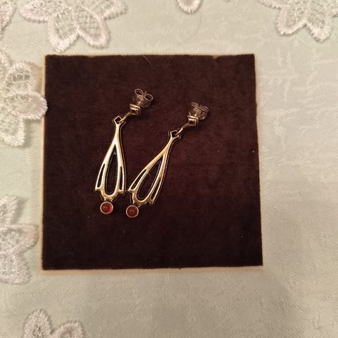 Myydään Kalevala-korun Kehrääjä korvakorut. Materiaali pronssia ja kivi spektroliittia.