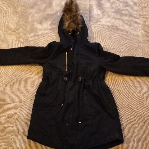 - Takki on hyvässä kunnossa muuten, mutta oikeassa hihassa hihansuussa on pieni reikä, joka näkyy viimeisessä kuvassa. Olen ostanut takin käytettynä ja reikä oli siinä jo silloin eikä ole suurentunut minun käytössä eli ei ehkä tuosta suurene kovin helposti