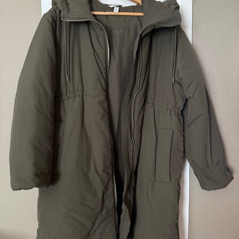 H&M Mama tummansininen äitiystoppatakki M-koossa. Ekoissa kuvissa näkyy väri oikeanlaisena.