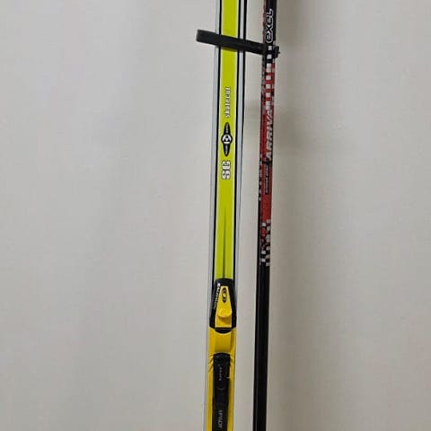 Fischer perinteisen laadukkaat kilpasukset ja sauvat ja suksipussi Salomonin kilpa siteet