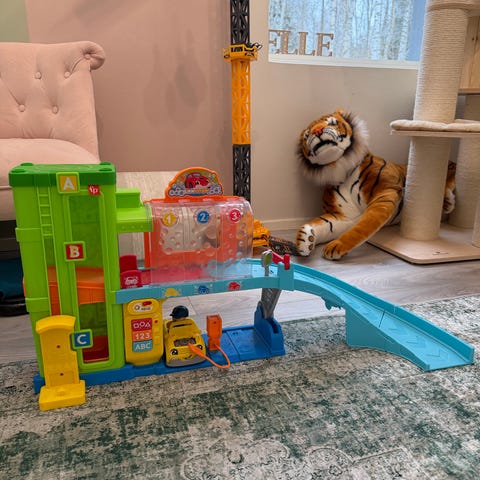 Tässä maatila, paloauto, koulubussi ja hahmo, merirosvolaiva, reki ja poro sekä hahmo, heppa,koira,pöytä, nuotio, asuntovaunu jossa toimii äänet.