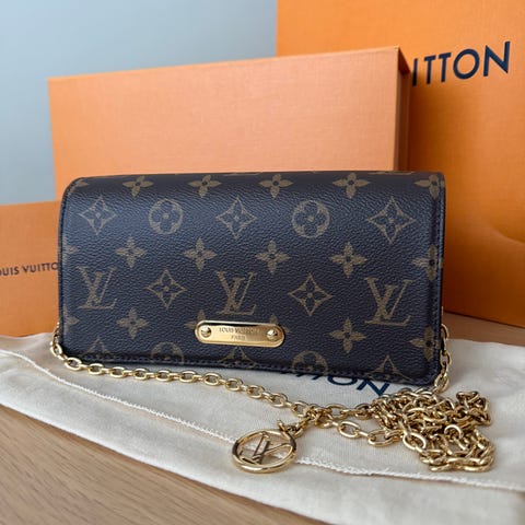 Myydään erittäin hyväkuntoinen Louis Vuitton Flore wallet on chain. Laukku on ostettu second hand- myyjältä Vestiairesta. Laukku on aitoutettu ja siinä on siru. laukussa on aito Vuittonin ketju.
