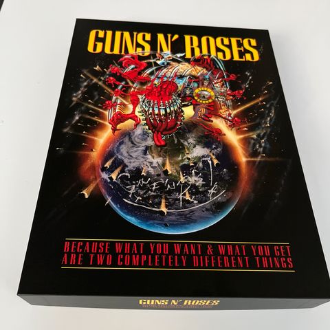 Virallinen Guns N’ Roses VIP-merch-setti Tampereen 2025 keikalta.