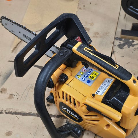 Polttomoottorikäyttöinen ketjusaha. 1-käden yläkahvamalli. Automaattinen öljypumppu. Primer, ketjun kiristys sivulta. Oregon ketju ja laippa.