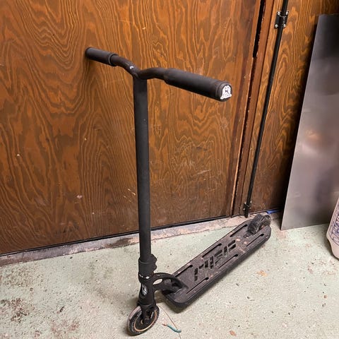 skuutti/potkulauta. Huom takakumi puhki menee paikkaamalla. Hinta 15e