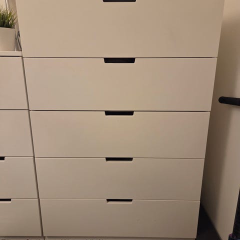 Myydään moitteettomassa kunnossa oleva Ikean valkoinen Nordli lipasto kuudella laatikolla.