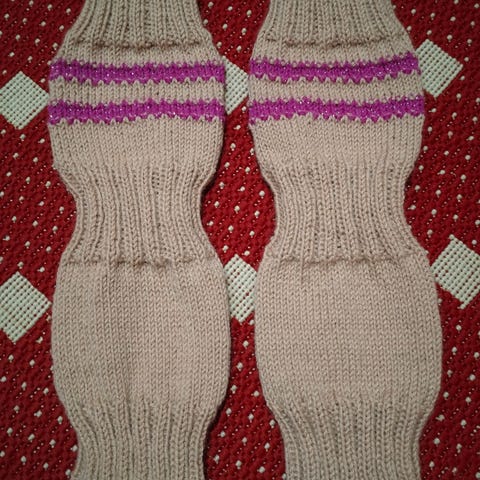 Myydään UUSIA, käsinneulottuja villasäärystimiä. Kummatkin säärystimet on neulottu 7 veljestä langasta.