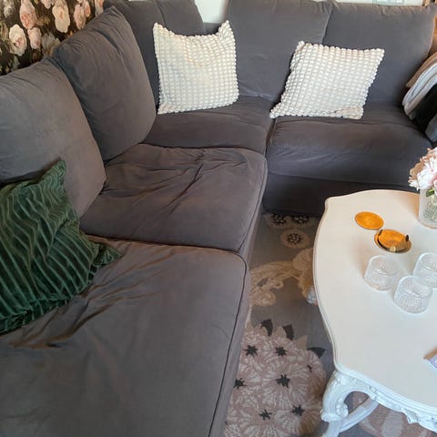 Istuintyynyissa on myös vetoketjut eli nekin päälliset voi saada pesukoneeseen ,kangas on edelleen tosi hyvässä kunnossa tyynyt ovat hyvässä kunnossa,sohva menee kolmeen osan,lemmikkivapaa ja savuton, Jämäkät irtotyynyt 8kpl selkänojissa ,hyväkuntoinen.