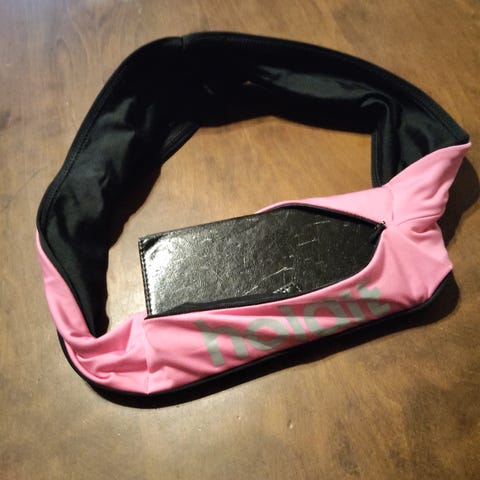 Myydään lenkkeilyyn sopiva juoksuvyö, jossa paikka juomapullolle sekä vetoketjulliset säilytystaskut. Heijastinnauhat parantavat näkyvyyttä pimeällä.