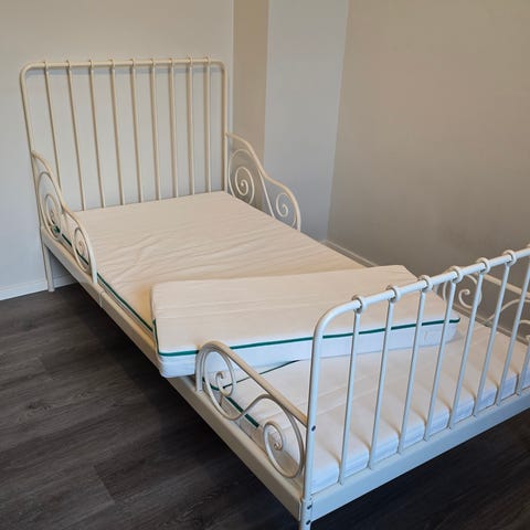 MINNEN Jatkettava sängynrunko + sälepohja, valkoinen