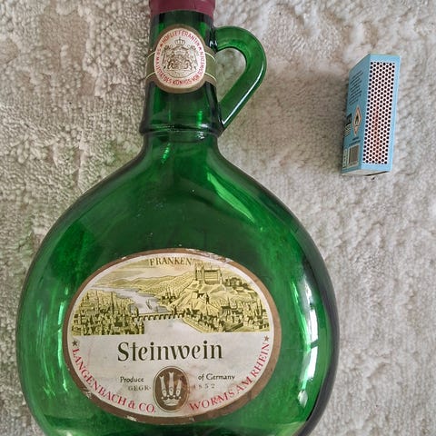 Vanha cognac-pullo vintagea. Olisiko 1960- luvulta