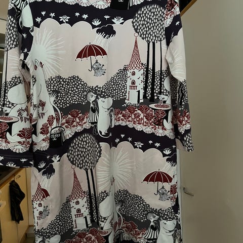 Uudenveroinen kuvien mukainen Muumi-tunika myyntiin, pohjaväri beige. Kirkkaat värit, ei nukkaa. Tämä edullisesti muumifanille! Hinta vain 14 euroa.