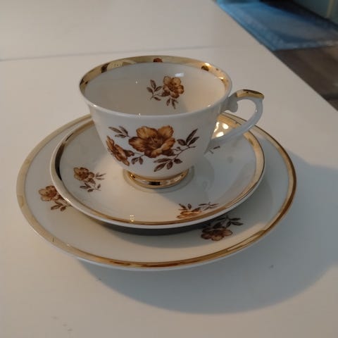 Kuppeja 2 kpl ja asetteja 4 kpl. Piippuleimalliset. Yhteensä 15 euroa