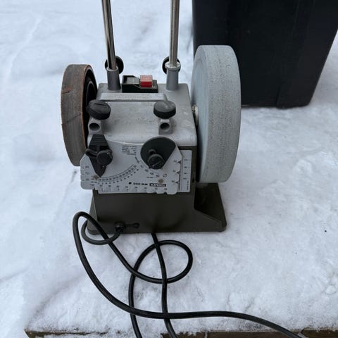 CEG MQT 1 HEC 34 kivihiomakone, teho 1,1 kW, jännite 230 V, taajuus 50 Hz, valmistettu Italiassa. Laitteessa on hiomakivi ja tasainen pinta kiven teroitukseen ja muotoiluun. Vesikastelu.