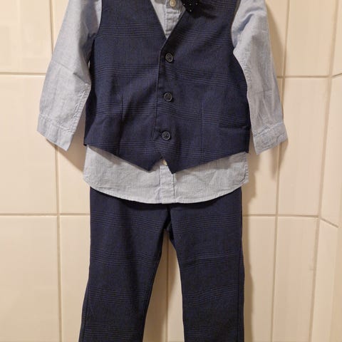Myydään Mayoral-merkkiset juhlavat tummansiniset housut ja Lindex -merkkinen juhlava pitkähihainen body koossa 86.