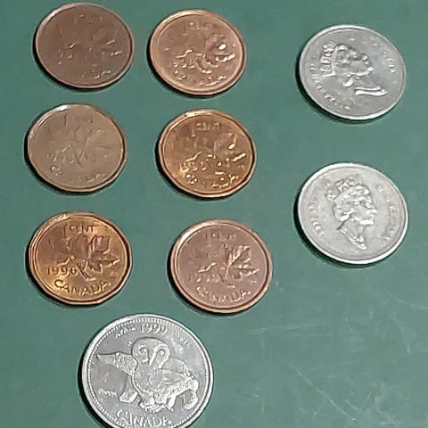 Kuvien kolme kanadalaista kolikkoa myydään yhteishintaan 2€/tarjous. Lähetys kirjeessä 4€ lisähintaan. Samalla 4€ kirjemaksulla tulee useampi kohteeni (500g raja!).