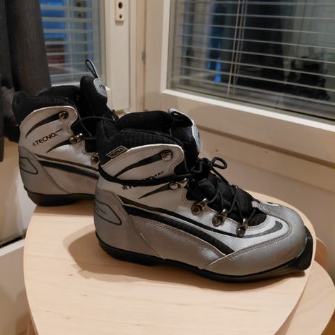 Myydään joko pakettina tai erikseen, sukset 156cm (10€) ja monot koko 35 (5€). Vain nouto Otaniemestä