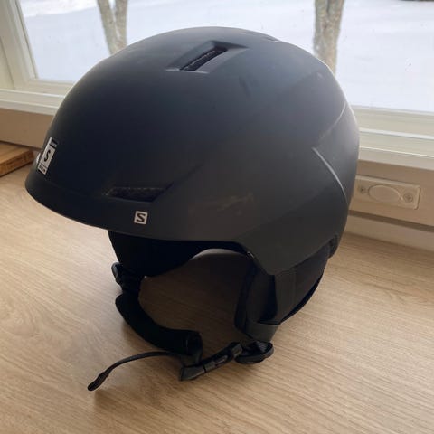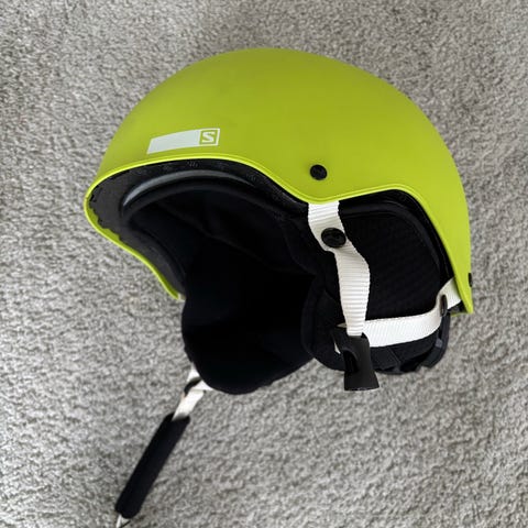 Salomon kypärä, koko M (56,5-57,5 cm), vihreä väri. Kypärässä on irroitettava pestävä sisävuori.