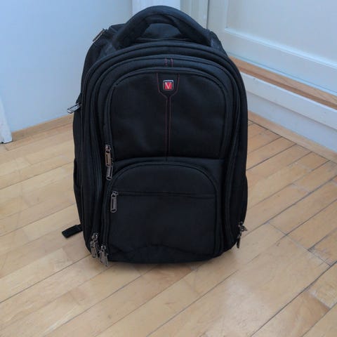 Zeeksackin tyylinen reppu, ollut yhdellä reissulla käsimatkatavara käytössä.