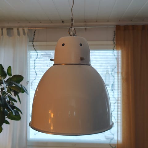 Noin 45-47 cm leveä ja 30 cm korkea Pentikin Deco -malliston lampunvarjostin. Sisäpuoli jonkin verran kellastunut mutta luo lämpöisen valon ympärilleen. Muutama ihan haalea pieni viiru (kts kuvat), mitkä erottuu vain tarkasti läheltä katsomalla. Meillä ollut Milano -lampunjalassa kiinni. Nouto esim Ritaharju tai Oulun keskusta.