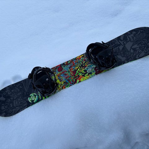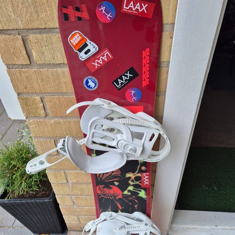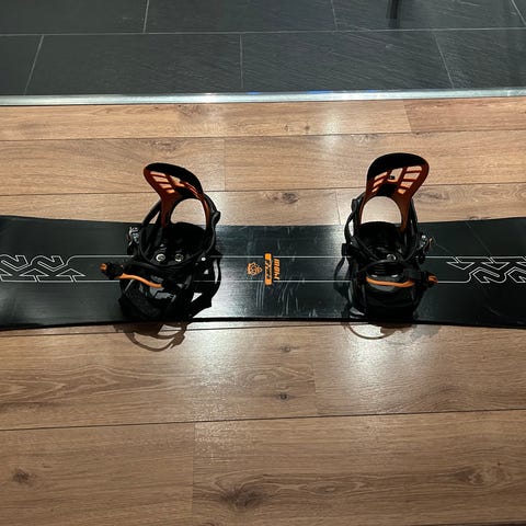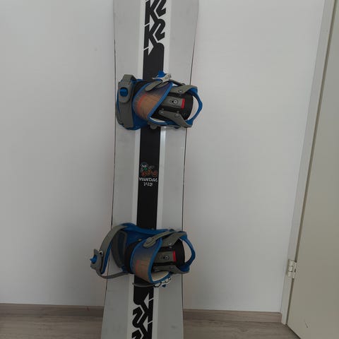Tästä vaikkapa ekaksi lumilaudaksi pari talvea sitten ostettu K2 Standard. Lauta ja kantit yleisesti hyvässä kunnossa.