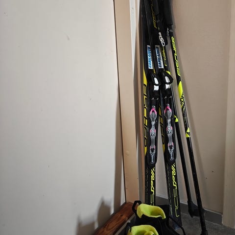 Ostetaan lapselle perus suksipaketti n.120cm, sauvat ja suksiin soveltuvat 32 koon monot.