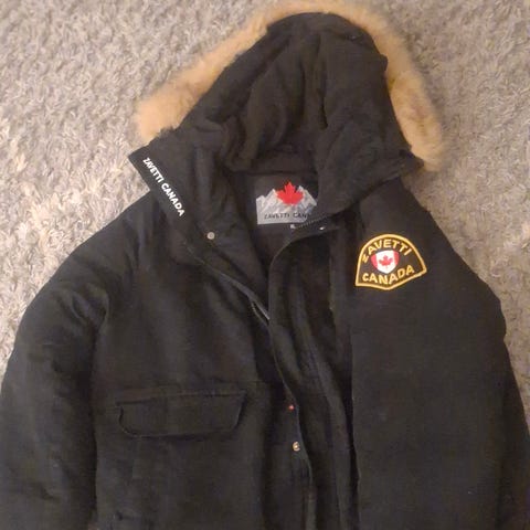 Zavetti Canadan todella lämmin ja paksu parkatakki. Pärjää hyvin yli 20 asteen pakkasissa. Paksuuden vuoksi vähän hankala autolla ajaessa. Ei logoa hihassa.