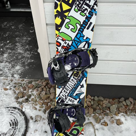 Ride 160cm lumilauta ja siteet. Käytetty, mutta ehjä.