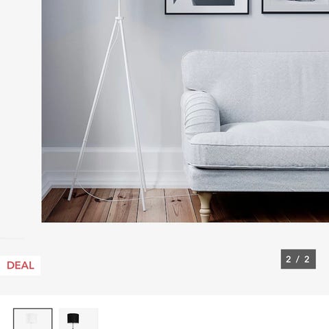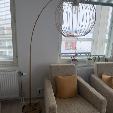 Kolmijalkainen, kolme valonlähdettä ja varjostinta: valkoinen ja kaksi mustaa. Korkeus n. 160cm. Himmennettävä. Saa osiin.