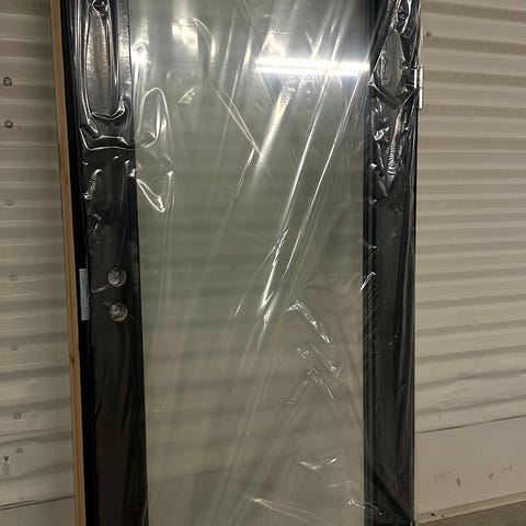 Puinen lasiovi, mitat noin 78,5 cm leveä ja 187cm korkea. Ovi sisältää yläosassa useita lasiruudukkosia (8kpl)