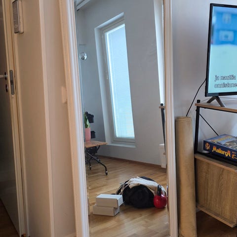Myydään kuvan mukainen siisti ja ehjä iso sisustuspeili kultaraamein.