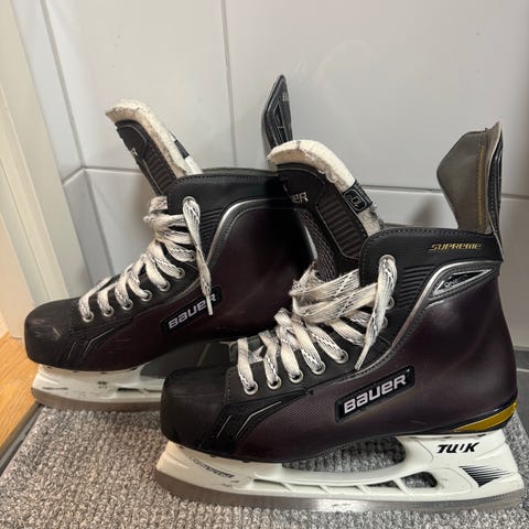 Hyvässä kunnossa ja vähällä käytöllä olleet Bauerit seuraavalle omistajalle. Koko normaali 44,5 eli Bauerin 9 D. Paino 830g. Hyvät ketterät luistimet pelaajalle kuin pelaajalle. Kaipaavat teroitusta.