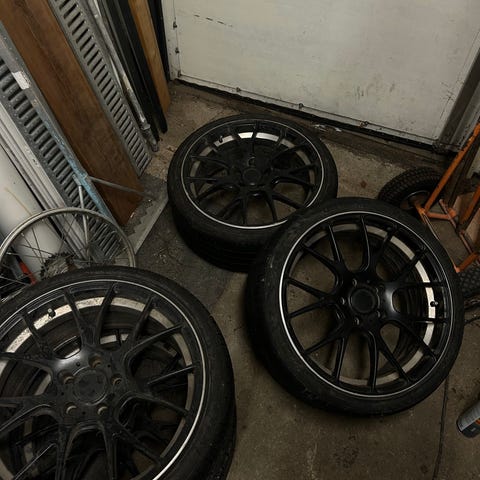 Myyntiin jr 9 vanteet. Siistissä kunnossa, ei hitsailtu, ei kierot tms. Renkaat ei enään parhaassa kunnossa, mutta ajeleehan nuilla vielä. Kaikki vanteet 10” leveitä, renkaina 215/40 ja 205/40.