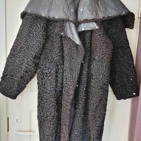 Upea aito Tarja Niskasen vintage turkis, jossa napit, taskut ja kiristysnauha. Kuvanmukaisesti yksittäinen tahra sekä muutama repeämä vuoressa.