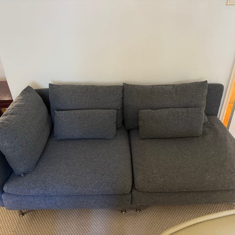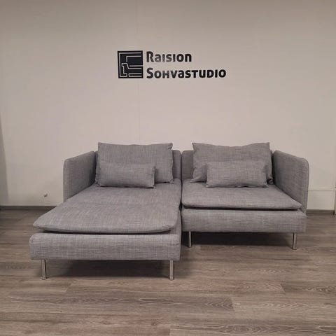 Myynnissä erittäin suuren suosion saavuttanut Ikean Söderhamn sarjan 3:n istuttava sohva. Sohvan runko on ehjä. Tyynyt ryhdissään. Päällisten väri: Fridtuna tummanharmaa. Itse sanoisin keskiharmaa. Päälliset erittäin siistikuntoiset. Sohvan kaikki päälliset ovat irroitettavissa pesuun. Rungon päällinen mukaan lukien. Lisäksi päälliset ovat halutessaan vaihdettavissa. Sohvan kunnossa ei negatiivista huomautettavaa. Sohvan hinta: 339e.
