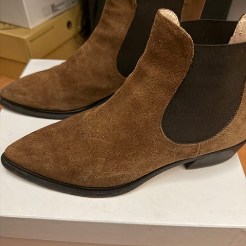 AGL nilkkurit ruskeaa mokkaa, koko 39,5. Kenkien takaosassa vetoketju ja koristeelliset niitit. Käytön jälkiä näkyvissä pohjissa ja kantapäässä. Kengät nahkaa niin sisältä kuin ulkoa.