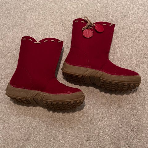 Siistikuntoiset huopikkaat, pohjan mitta 18 cm eli vastaa kokoa EU28. Ei tuote- tai kokotietoja tarkemmin.