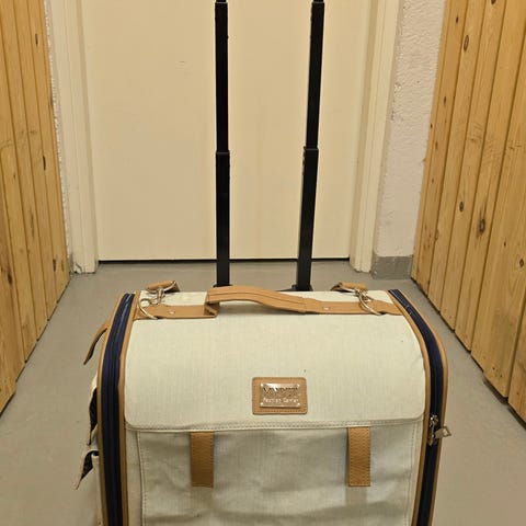 Hyvin pienelle koiralle /pennulle sopiva kuljetuskassi. Hyvässä kunnossa. Joustava ja pehmyt. Ei kauhean tukeva rakenteeltaan. Pystyy kantamaan myös olalla.