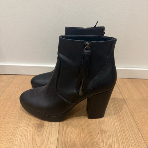 H&M korkokengät, koko 39, vastaavat kokoansa. Kengissä on melko korkea korko ja kullanväriset koristeet. Materiaali synteettistä nahkaa.