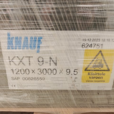 Tarpeettomaksi jäänyttä tuulensuojalevyä gyproc 1200x2700x9mm
