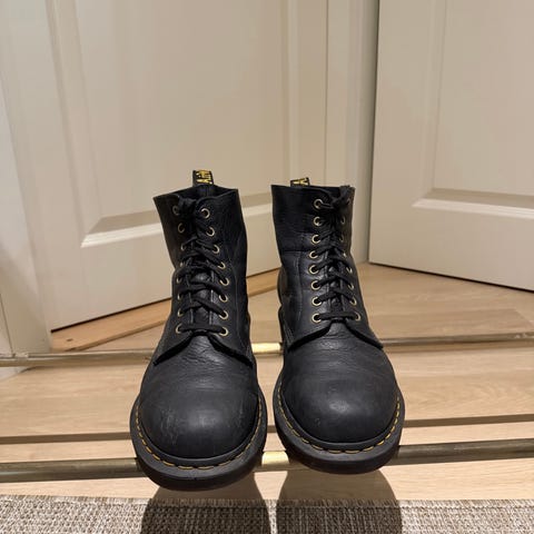 Ruskeat Dr. Martens-nahkamaiharit. Koko 43-44. Olleet käytössä 41,5-42 koon jalassa villasukan kanssa talvikenkinä. Pohjallisen pituus n. 28,5cm