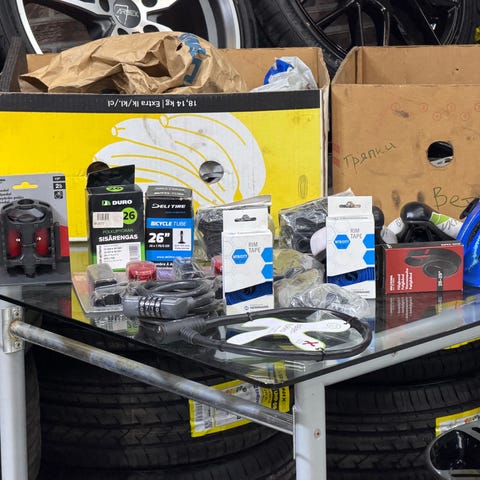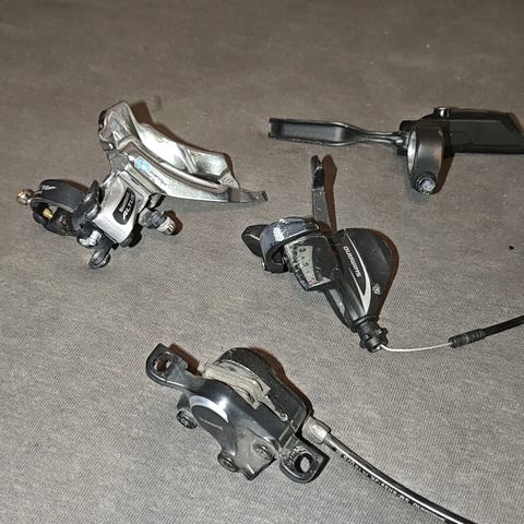 Myydään läjä pyörän osia pakettihintaan: