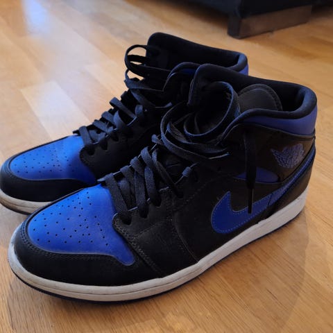 Nike Air Jordan 1 Mid Muu urheilukengät, koko 38. Värit musta ja valkoinen. Sopivat monipuoliseen urheilukäyttöön ja vapaa-ajan käyttöön. Pieni nirhauma jalantiessä, muuten hyvässä kunnossa