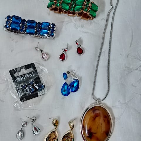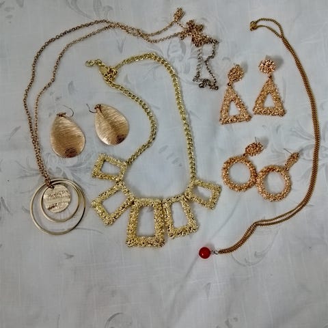 3 sormusta,4 rannekorua,kaulakoru,riipukset;ruusut,ankkuri ja siivet.Kaikki yhdellä kertaa.Haku.Käteinen