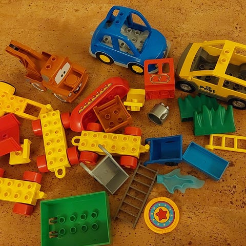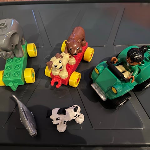 Setti selvästi vanhempia Duploja: traktori, poliisiauto, äiti, vauva&vaunut, pelle ja 3 muuta ukkoa. Postitus tai nouto Tampereen Amurista.