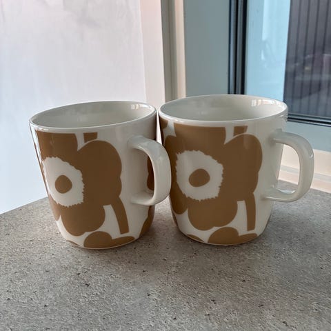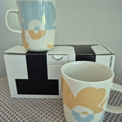Marimekko Unikko mukit 4 kpl ja yksi Marimekko Aurigonkukka muki, 2,5dl. Kaapin kätköistä käyttämättömät mukit myyntiin, tarrat poistettu. Kuvaan virutin pölyt pois. 20€ kpl posteineen.