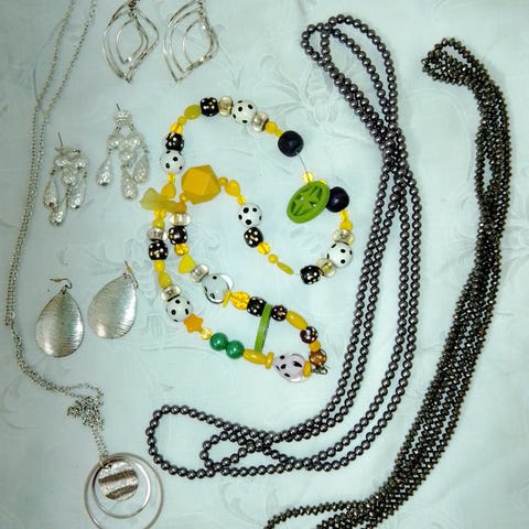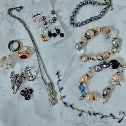 Kuvan korut kaikki kerrallaan.Korvarenkaista saattaa puuttua takaosat/lukitus napit