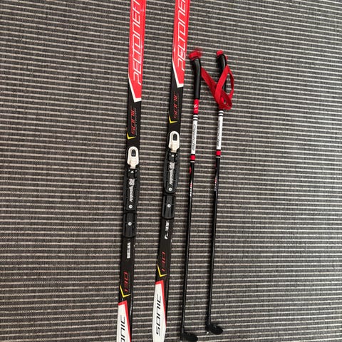 CLR sports lasten sukset (130) ja Oneway sauvat (105cm). Monoja ei ole. Sopivat n.120 cm lapselle hiihtoharrastukseen.